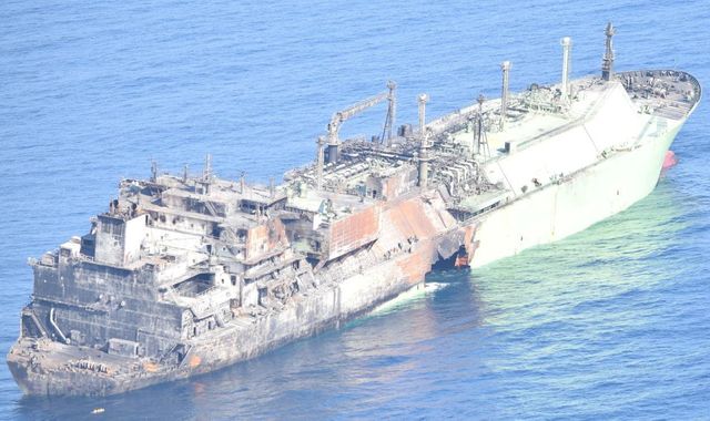 The ship, which has no crew, was carrying 700 metric tons of different types of fuel, and "a substantial amount of natural gas".
